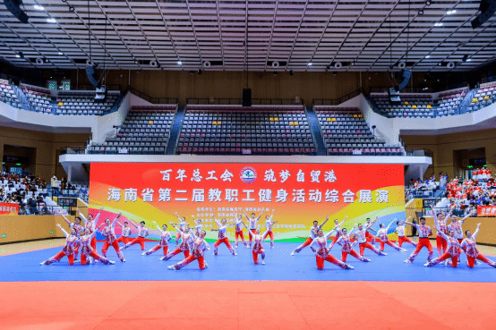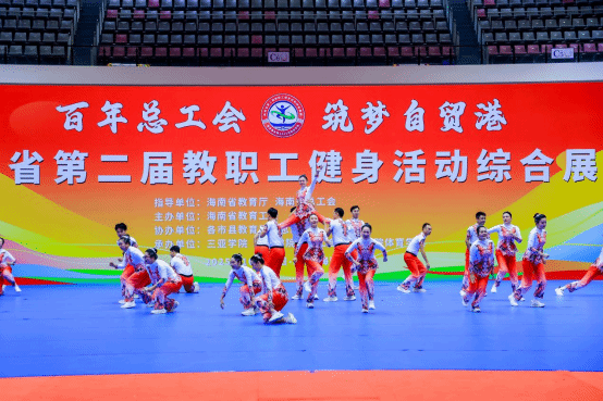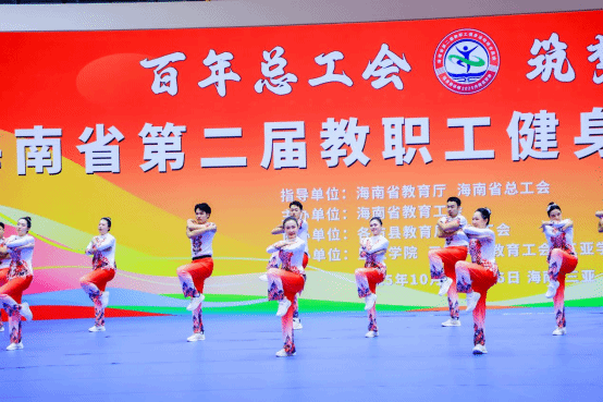 10月24日,由海南省教育厅、海南省总工会举办的“百年总工会 筑梦自贸港”海南省第二届教职工健身活动综合展演在三亚学院书艺馆开展高校组竞演。