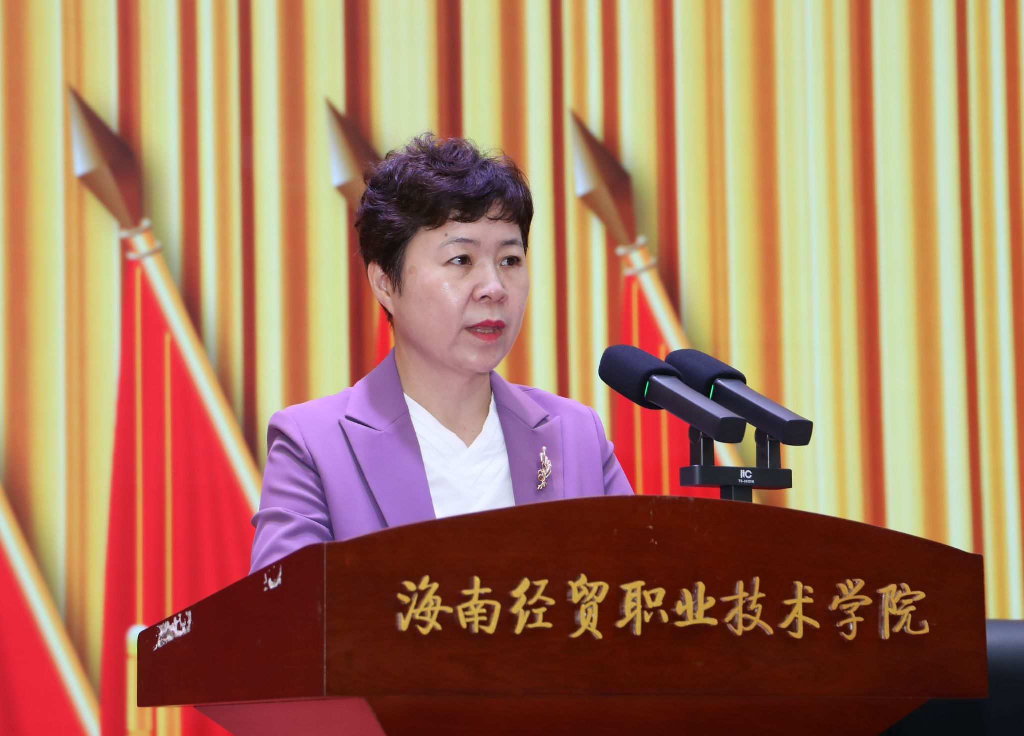 大会号召,全体师生要更加紧密地团结在以习近平同志为核心的党中央周围,坚守立德树人初心,凝心聚力、砥砺前行,努力为中国式现代化高等职业教育新实践和海南自贸港建设作出更大贡献。