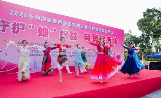 活动现场,海南经贸职业技术学院艺术团带来舞蹈《美丽中国》节目,海南师范大学女教职工带来《师韵芳华》表演,充分展现了教育系统女教职工昂扬向上的精神风貌。穿插进行的普法有奖问答环节,以趣味形式将《妇女权益保障法》《反家庭暴力法》《劳动合同法》等法律知识设计成选择题,调动了现场女教职工的参与热情。